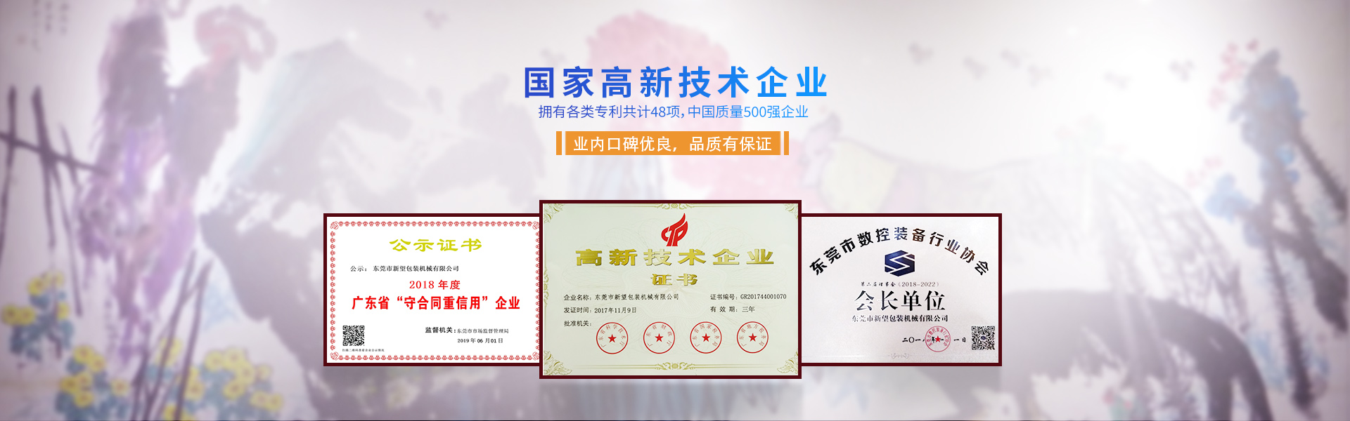 新望機(jī)械成立于1998年,位于東莞市東部工業(yè)園區(qū)的中心地帶——企石鎮(zhèn)東平村,交通方便、環(huán)境優(yōu)美舒適、視野開闊。公司注冊(cè)資本2000萬元,擁有辦公室、廠房等18,000多平方米。已通過ISO9001:2015國(guó)際質(zhì)量管理體系認(rèn)證,擁有國(guó)家各類專利共計(jì)58項(xiàng)。是東莞市企石鎮(zhèn)工商聯(lián)副會(huì)長(zhǎng)單位、東莞市企石鎮(zhèn)文學(xué)藝術(shù)界聯(lián)合會(huì)副主席單位、東莞市環(huán)保包裝行業(yè)協(xié)會(huì)副會(huì)長(zhǎng)單位、東莞市數(shù)控裝備行業(yè)協(xié)會(huì)第二屆會(huì)長(zhǎng)單位、廣東省包裝技術(shù)協(xié)會(huì)常務(wù)理事單位、廣東省膠粘劑行業(yè)協(xié)會(huì)理事單位、廣東省著名商標(biāo)企業(yè)、國(guó)家高新技術(shù)企業(yè)。